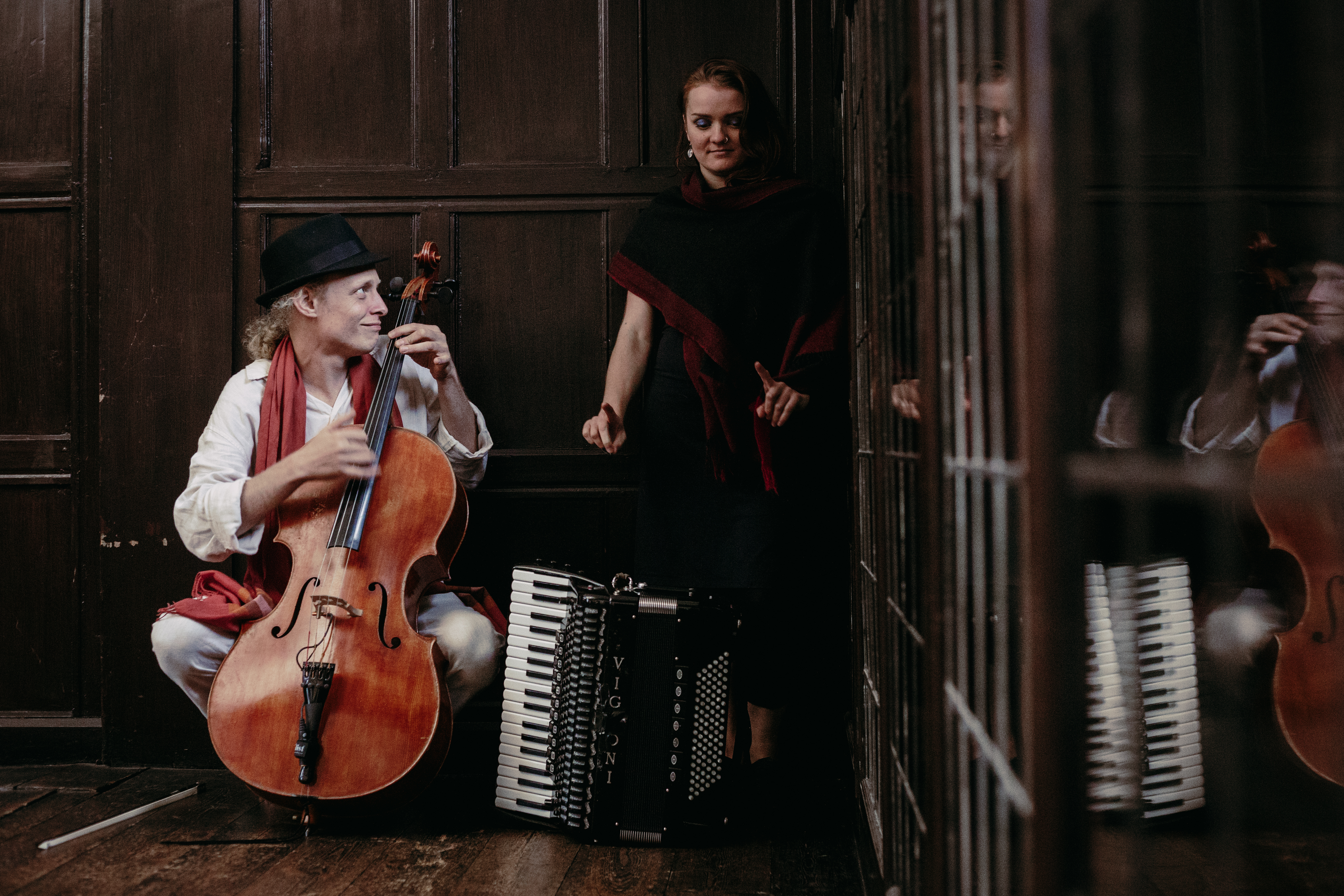 Soon he established himself in Ljubljana where he met and worked with musicians of all kinds; he developed a fascination for the folk music(s) of the Balkans and their intense, raw emotion. Through regular participation and mentoring in Etno histEria and the attendant Floating Castle festival, he has come to live and work in the wider European folk scene, playing Old-Timey Americana one night and Balkan-Ethno-Jazz the next, while making time for British folk songs, French dances and heartwrenching Anatolian ballads.