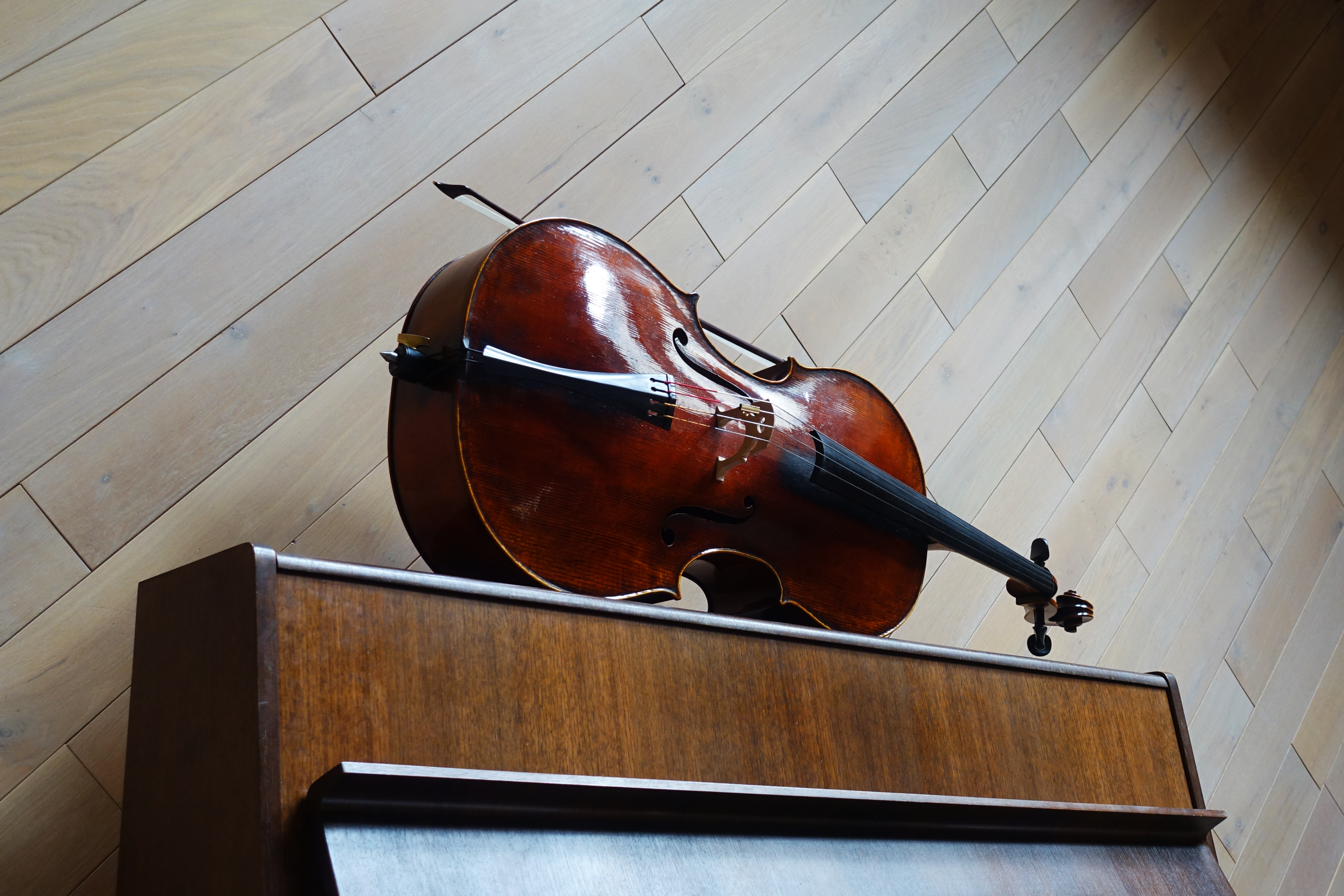 In 2018 I finally gave in to his entreaties to level-up to a newer instrument of his, and in November of that year he presented me with (to my ears) his masterpiece, a modified Gofriller model; after I tried it out, and in reference to its dark varnish, he nicknamed her la Bête Noire (the Black Beast). Its deep, rich voice and powerful delivery make it a real treat to play, and the ease of sound production combined with the breadth of its tone palette have made my musical life complete.
